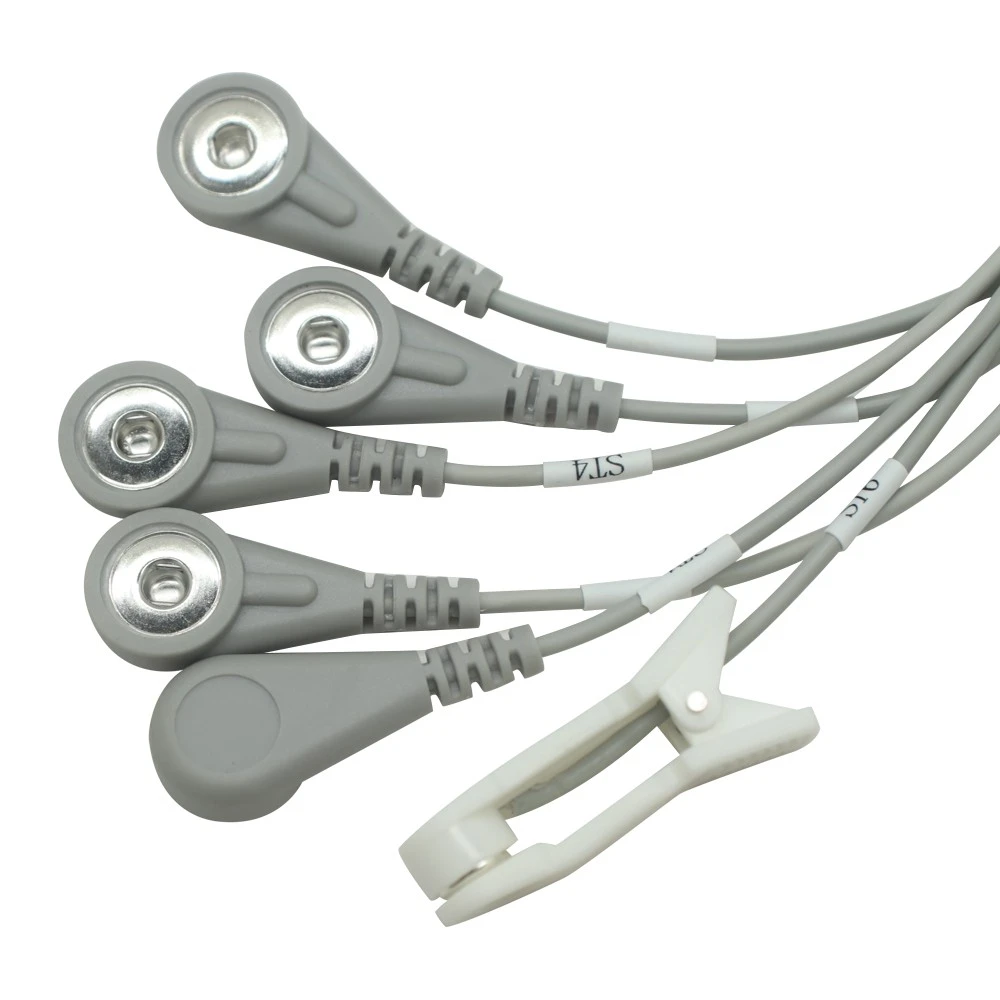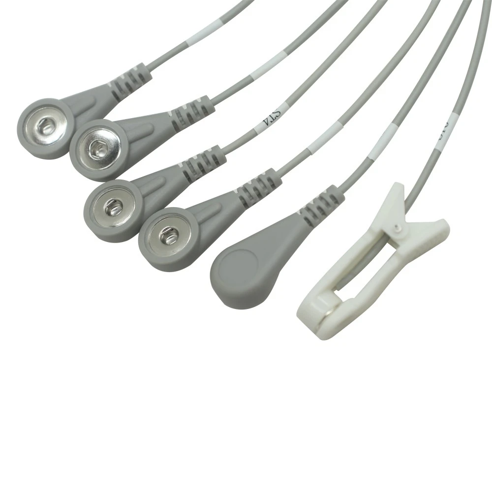Customized Typ C bis 6-Lead-Elektroden-Snap-Kabel mit TVNS Ear Clip EKG Snap Lead Draht | Dongguan ISO13485 zertifizierter medizinischer Kabelhersteller