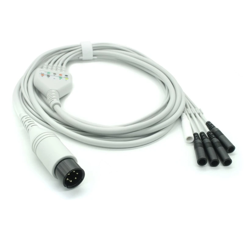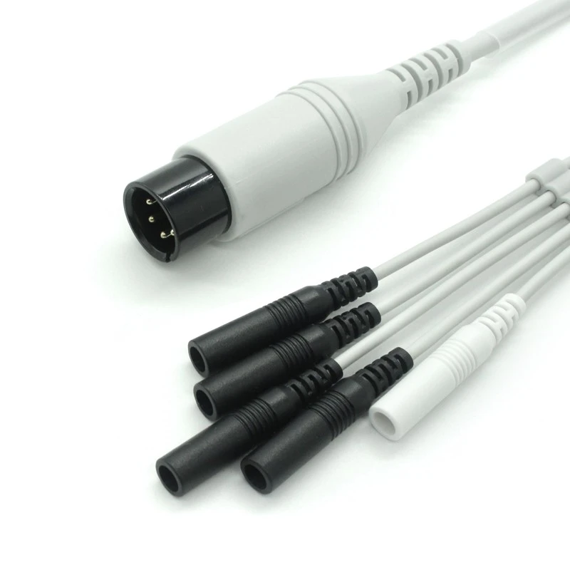 The 6 Pin Male Plug to 5 Leads 2.0 mm Electrode Pin with Protective Cover ECG Monitor Lead Wire delivers precise bio-signal connectivity for electrocardiogram (ECG) and patient monitoring systems. Manufactured by a professional Dongguan medical cable supplier, this lead wire ensures low-noise transmission and reliable mechanical performance. You may also view our Multi-Leads EEG/ECG Monitoring Electrode Cable