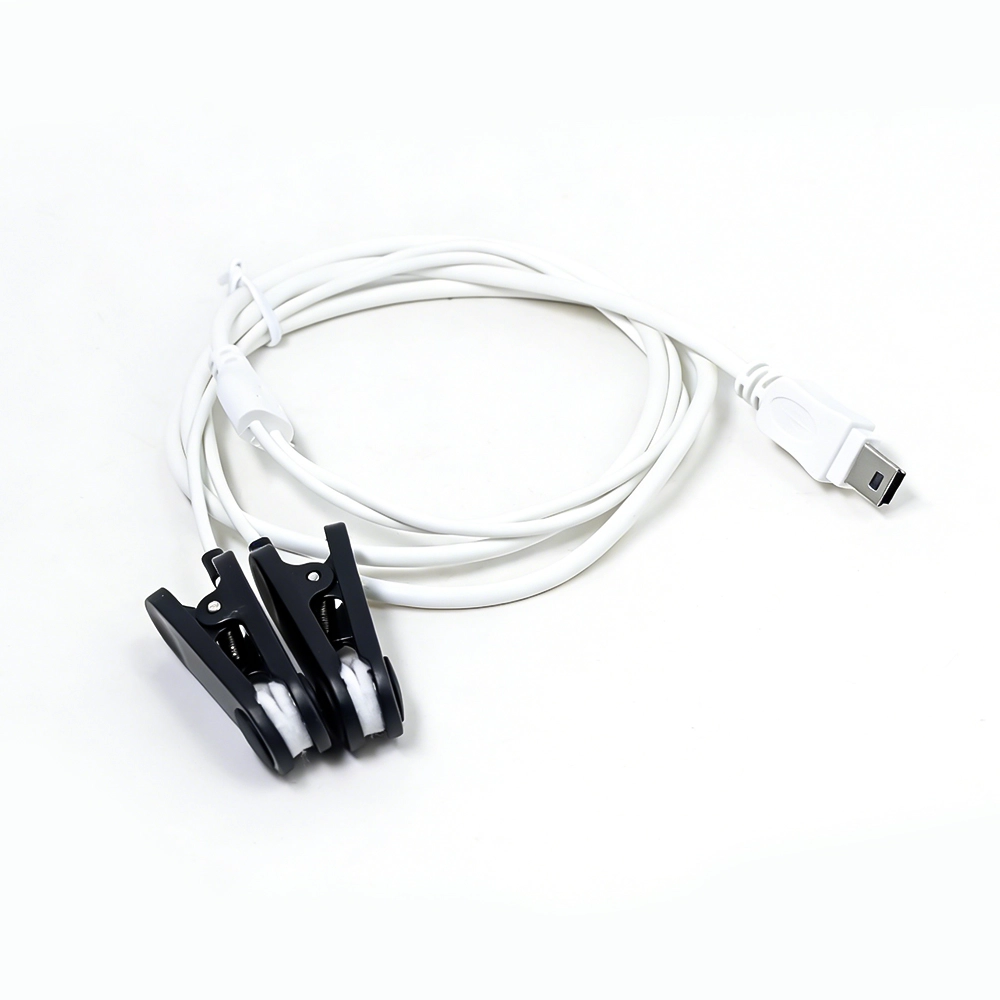 Custom Mini USB Connector to 2 Lead Black Ear Clips with ABS Foam for Physiotherapy Cable | ISO13485 Cable Supplier