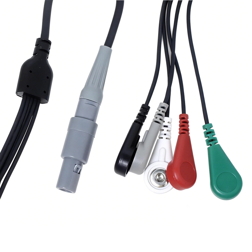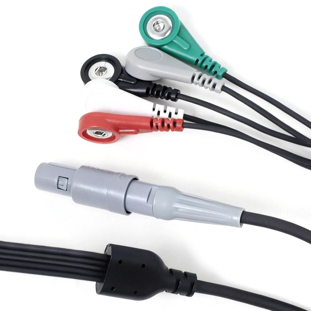 Conexão segura: O conector LEMO personalizado de 6 pinos garante um ajuste confiável e travado em seu dispositivo, enquanto os 5 cabos de encaixe fêmea de 3,5 mm fornecem uma conexão fácil e segura aos eletrodos de fisioterapia padrão. Para outras soluções de interconexão especializadas, você pode explorar nossa linha de soluções de alta integridade Cabos médicos personalizados de EKG, que são projetados com o mesmo compromisso com a precisão e clareza do sinal.